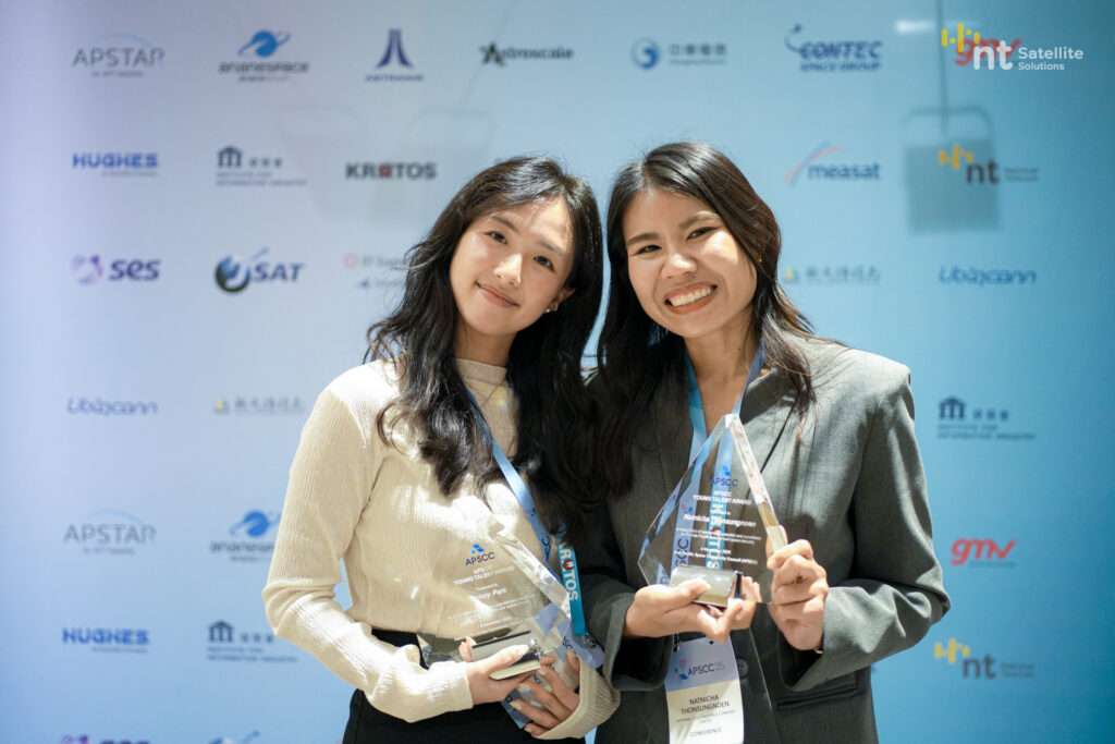 ปีนี้ยังเป็นความภาคภูมิใจของ NT เมื่อ คุณณัฐนิชา โทนสูงเนิน วิศวกรจากฝ่ายธุรกิจดาวเทียม ได้รับรางวัล APSCC 2025 Young Talent Award ซึ่งมอบให้แก่บุคลากรรุ่นใหม่ที่มีผลงานโดดเด่นและมีบทบาทสำคัญในการขับเคลื่อนอุตสาหกรรมดาวเทียมในภูมิภาคเอเชียแปซิฟิก